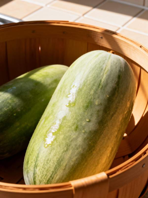 新鲜冬瓜置于竹篮