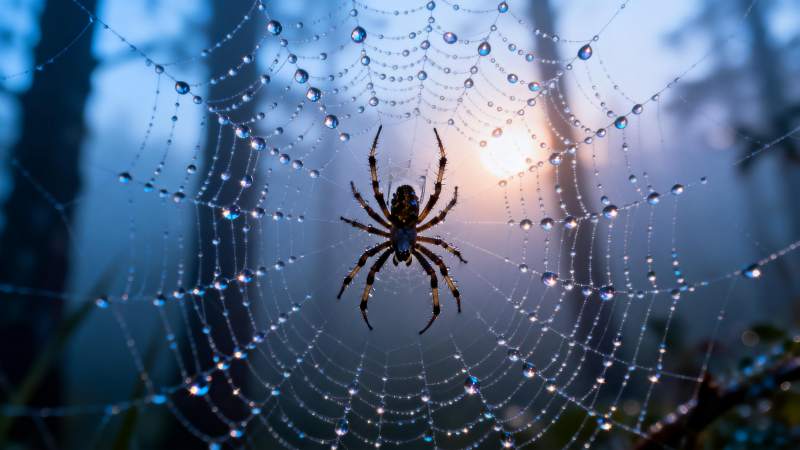晨露蛛网