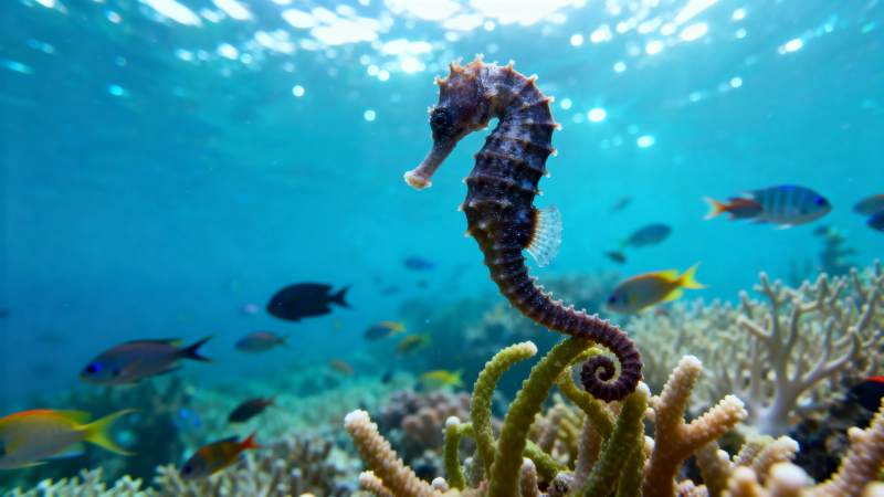 海马在珊瑚礁中游弋