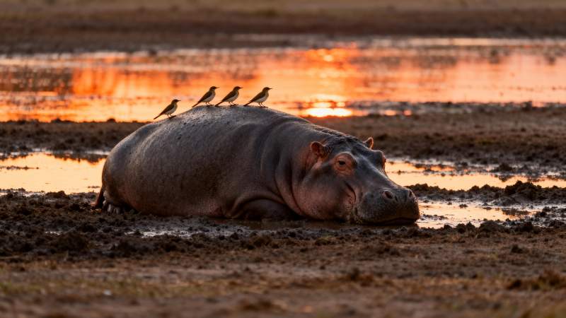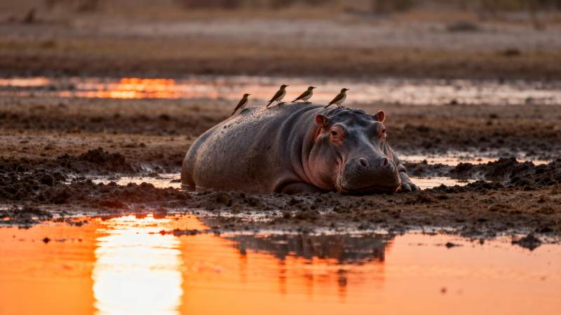 河马静卧日落时