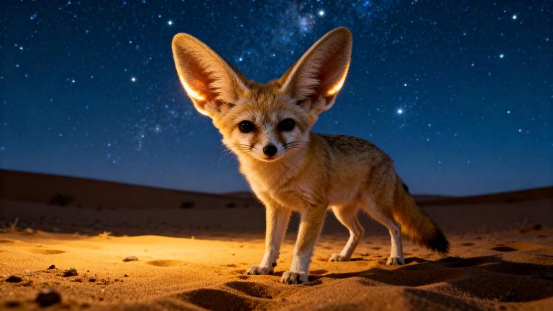 沙漠夜狐静立沙丘