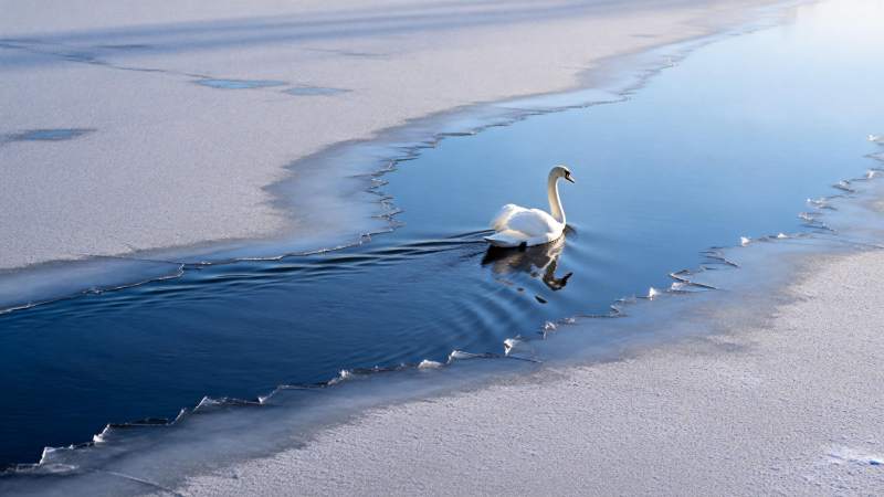 冰湖孤影天鹅