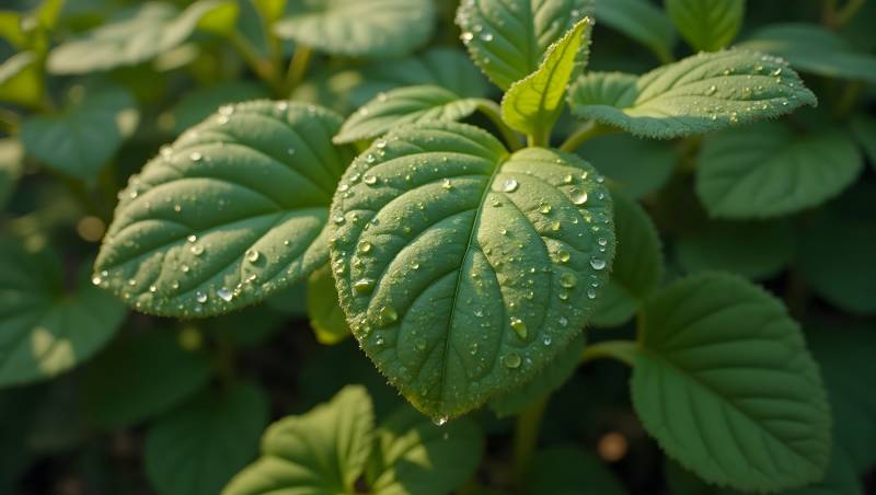 露珠点缀绿叶生机盎然