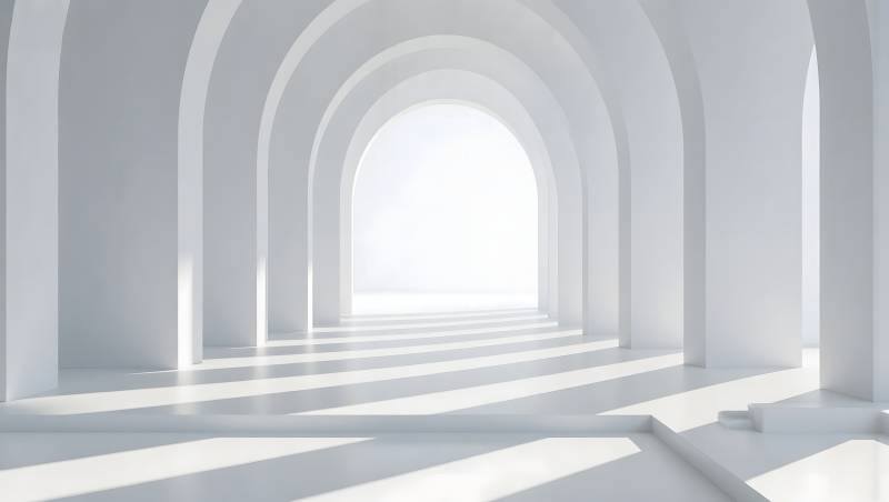 白色拱廊光影交错