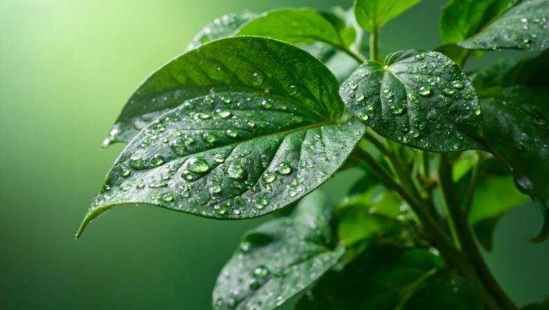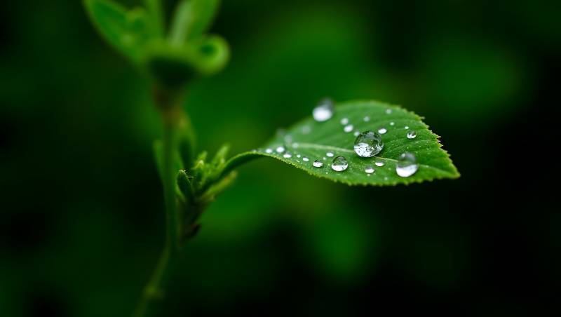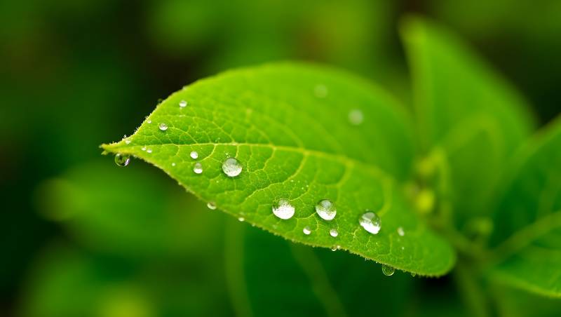 露珠轻缀绿叶