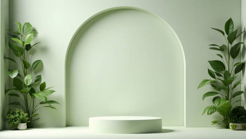 绿意盎然的展示台