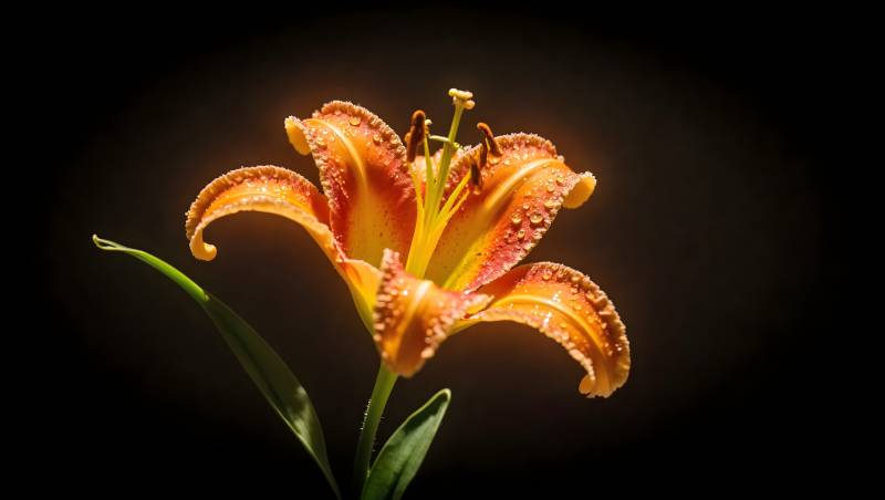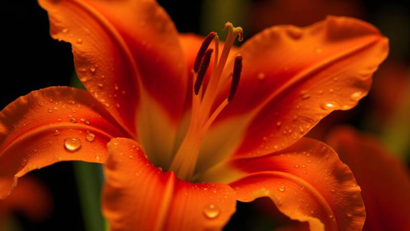 橙色百合花特写水珠点缀