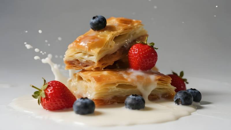 水果千层酥配奶油