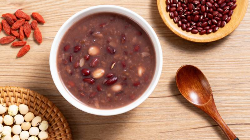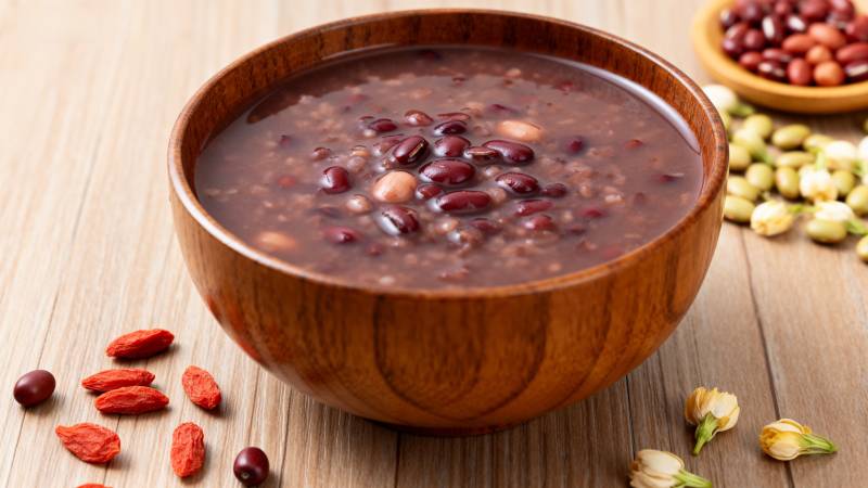 红豆汤配枸杞与豆类