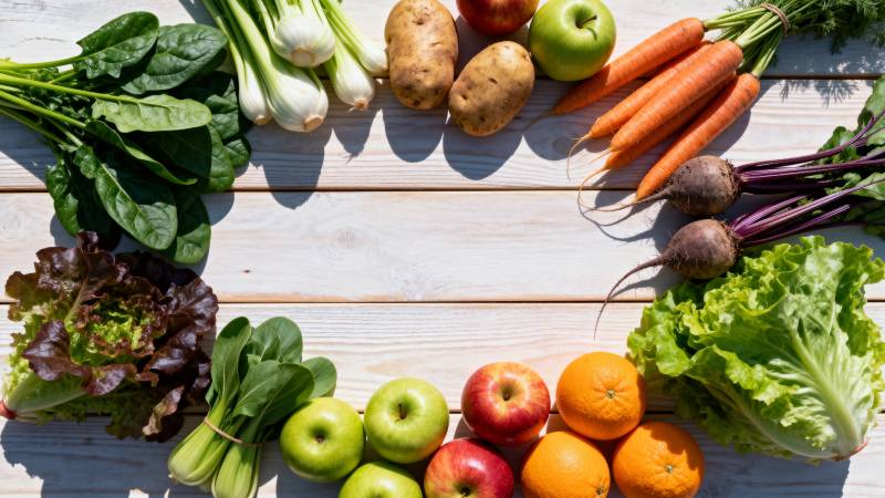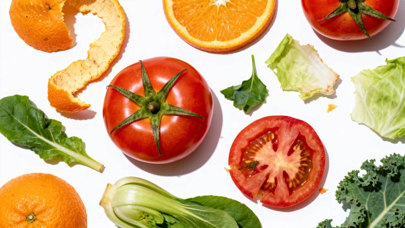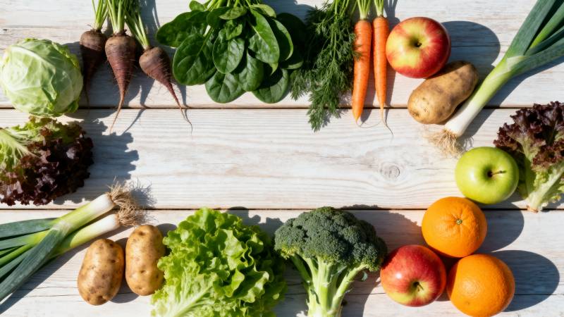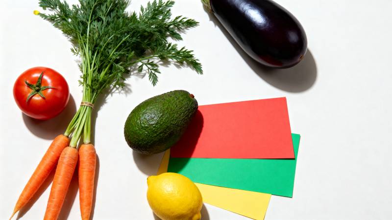 新鲜蔬果与彩纸