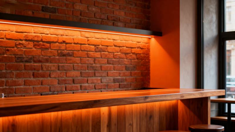 砖墙吧台暖光氛围