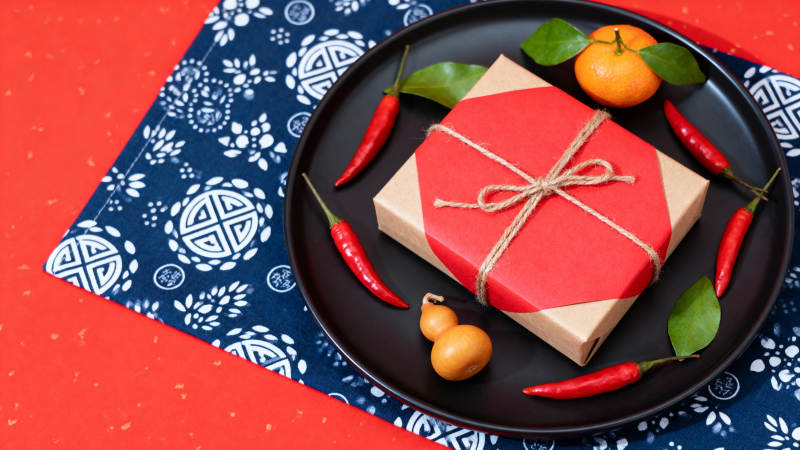 红礼盒伴果椒静置