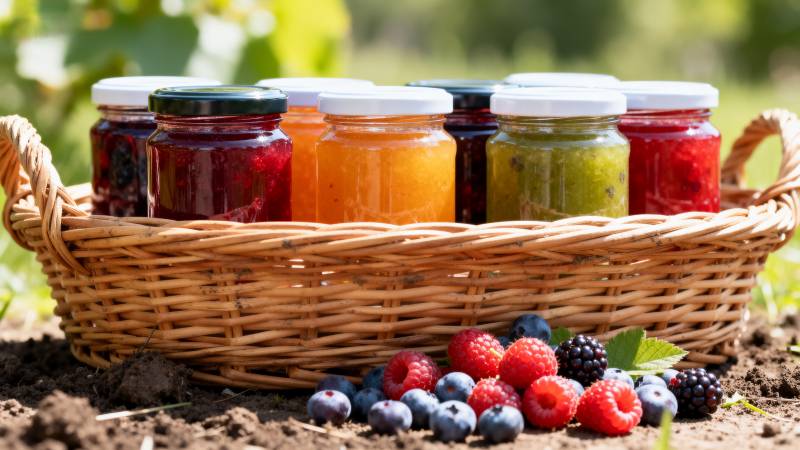 果酱篮子与新鲜浆果