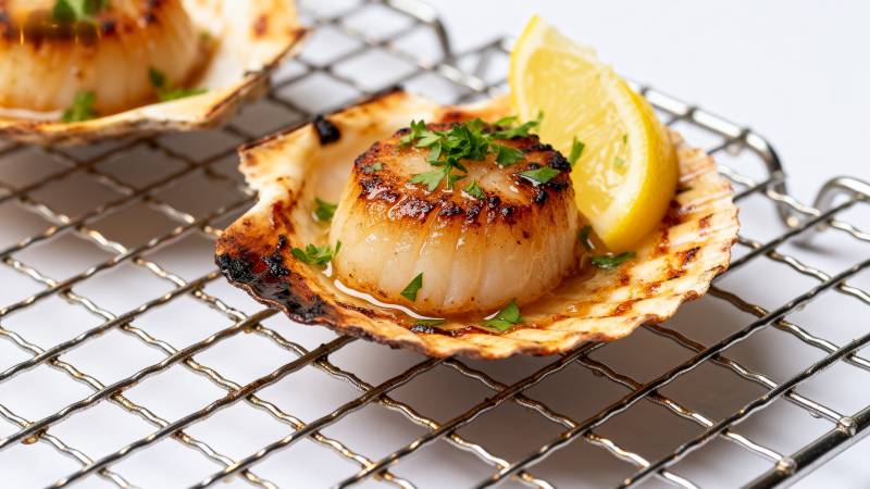 烤扇贝与虾