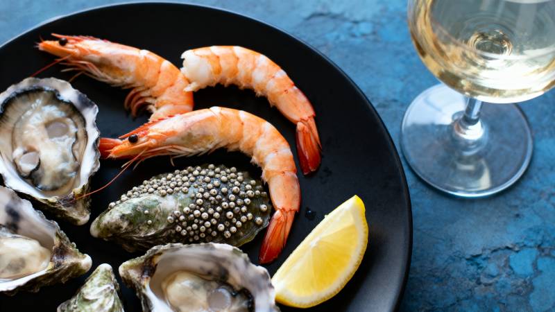 海鲜拼盘配白葡萄酒