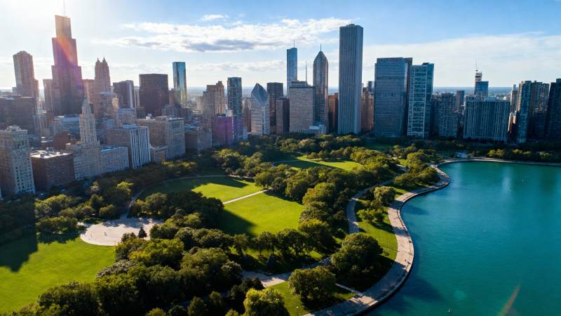 城市绿洲与高楼共舞