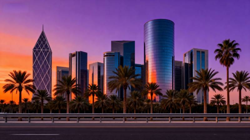 城市天际线日落