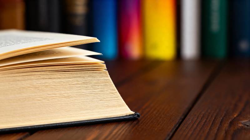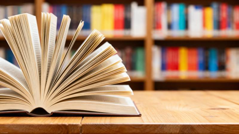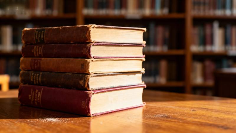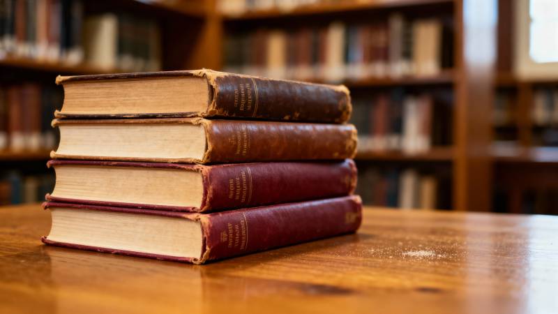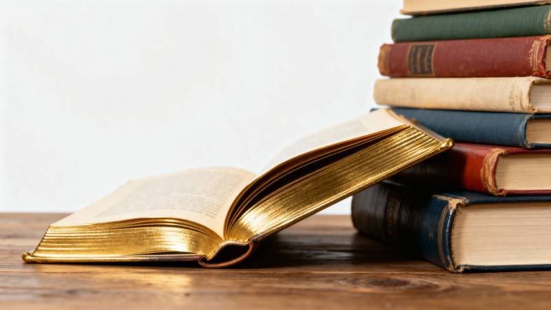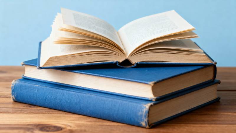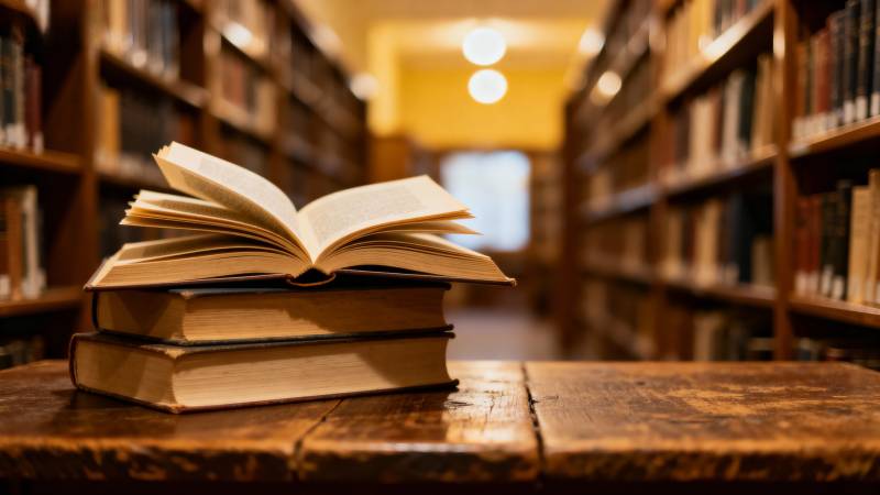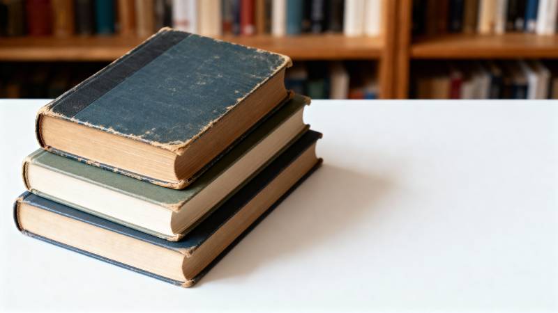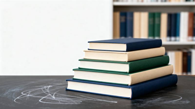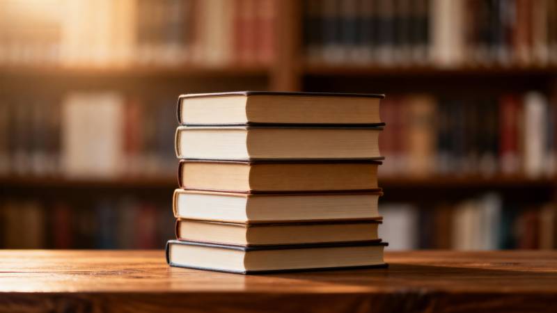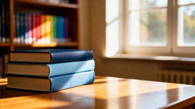 书堆静置木桌前