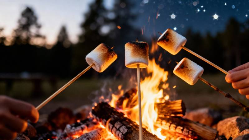 篝火烤棉花糖