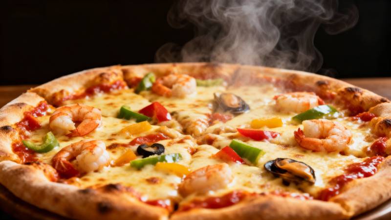 热腾腾海鲜披萨