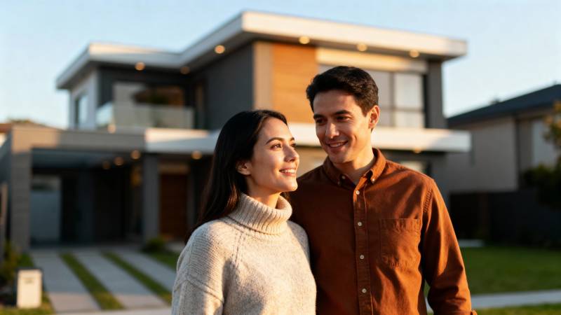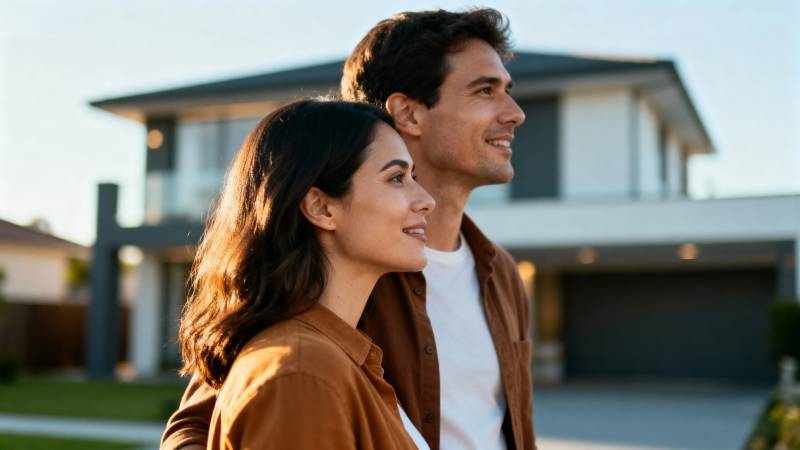 幸福夫妻新家前合影