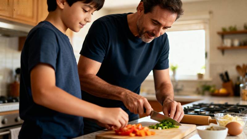 父子厨房共切菜