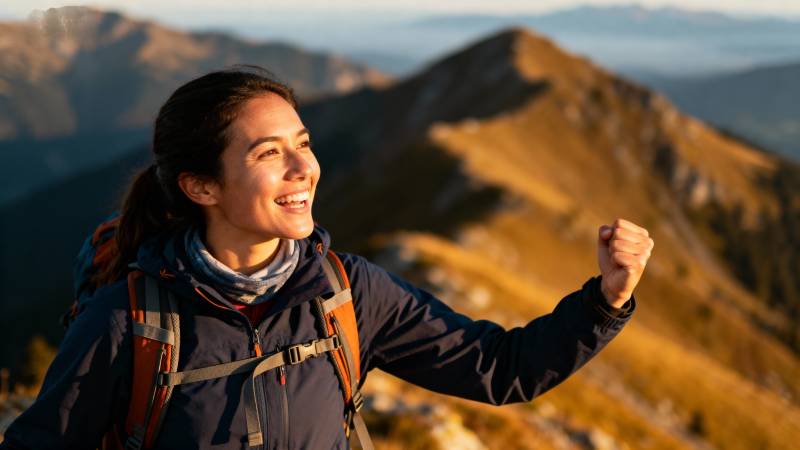 山巅欢笑的徒步者