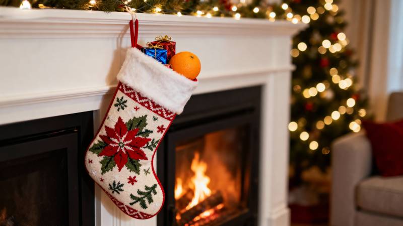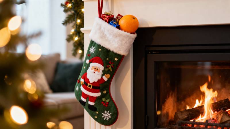 圣诞袜挂壁炉旁