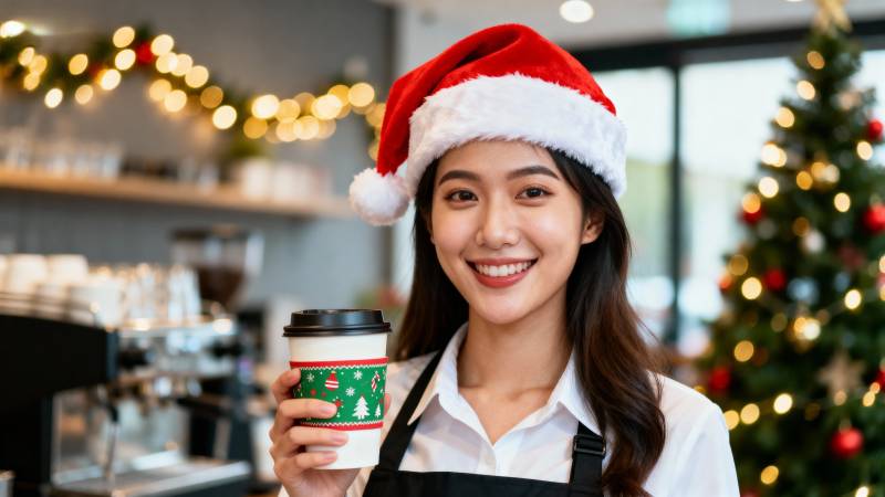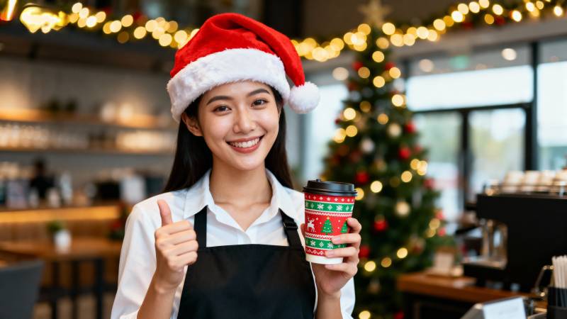 圣诞咖啡店微笑
