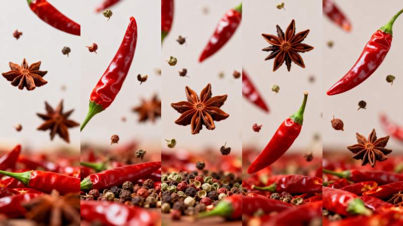 红椒飞舞香料纷飞