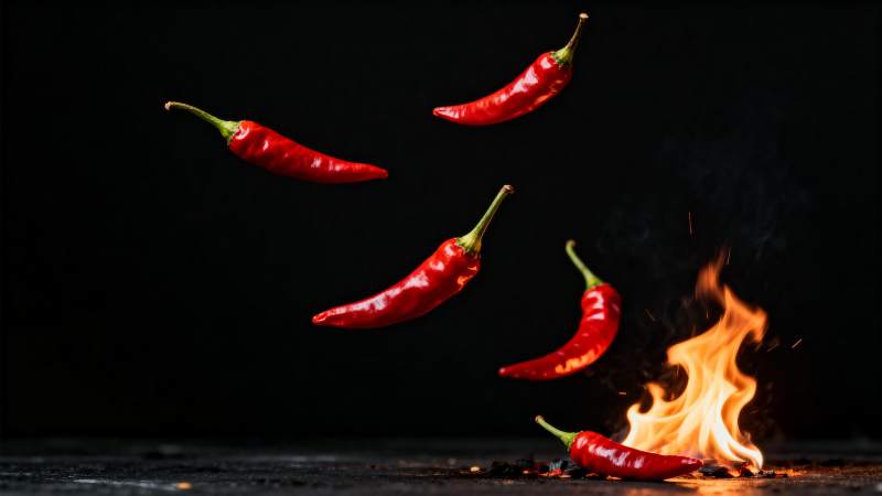 辣椒飞舞火焰中