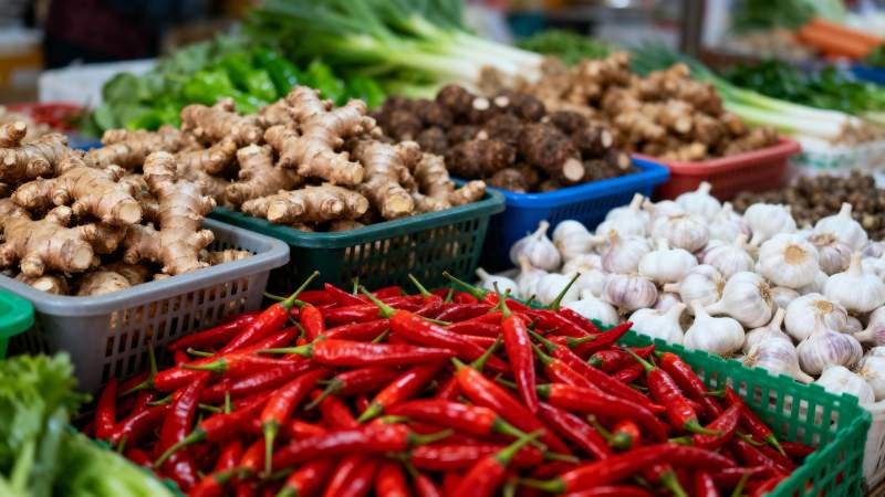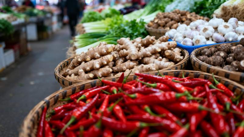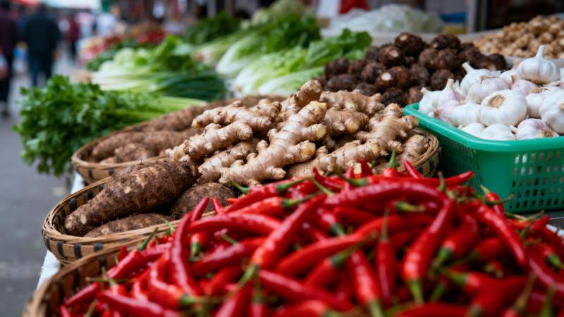 市场鲜蔬摊位