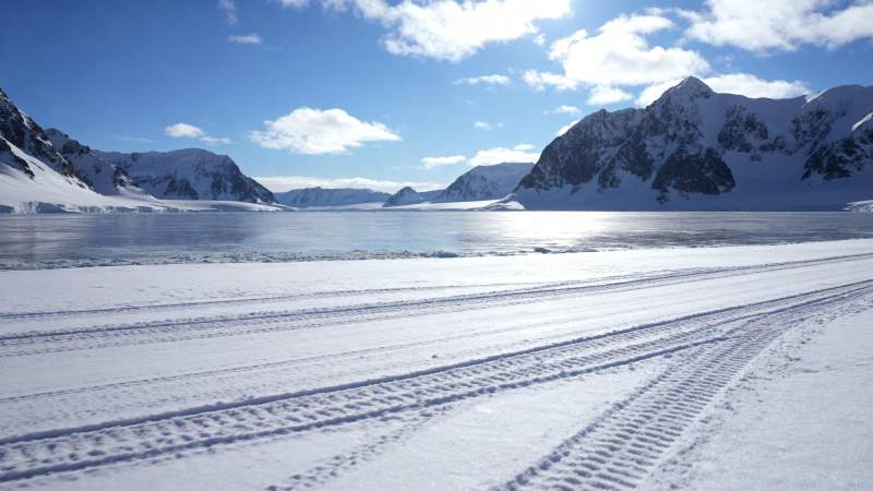 雪原上的车辙痕迹