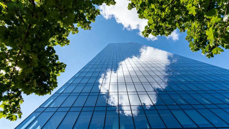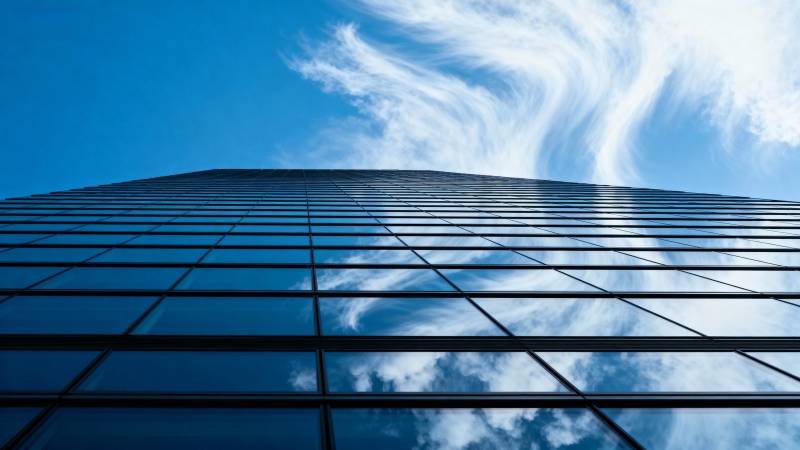 蓝天映玻璃幕墙