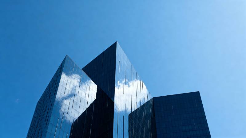 玻璃幕墙映蓝天