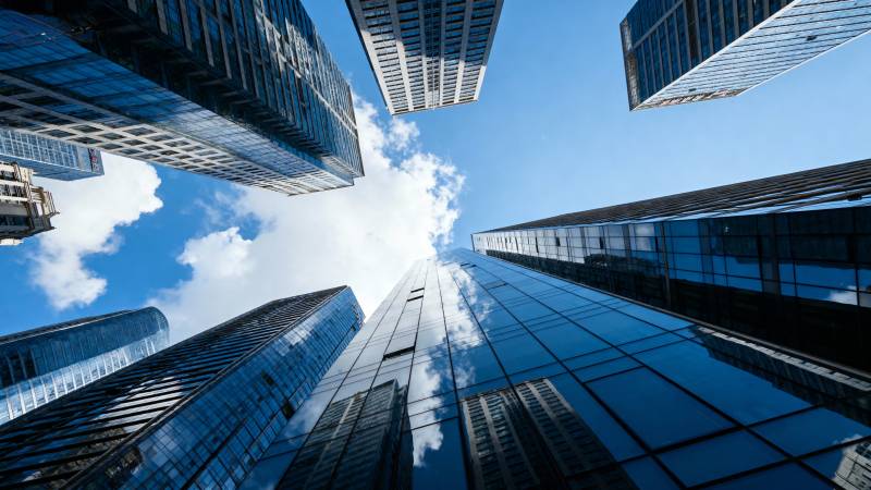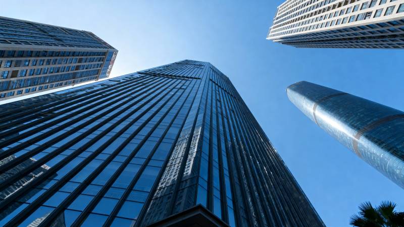 仰望摩天大楼群