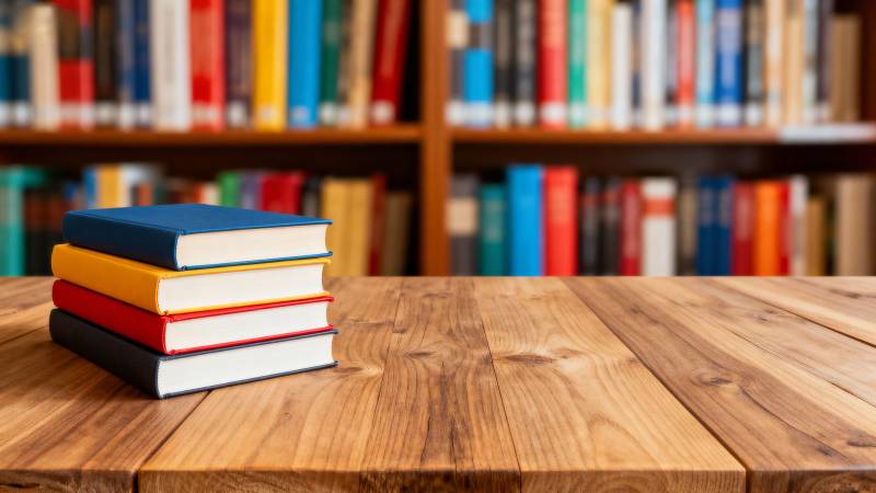 书本静置木桌