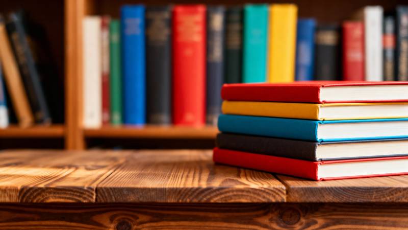 书桌上的彩色书籍