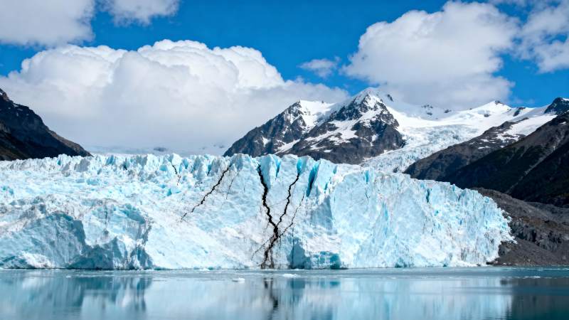 冰川裂痕映湖光
