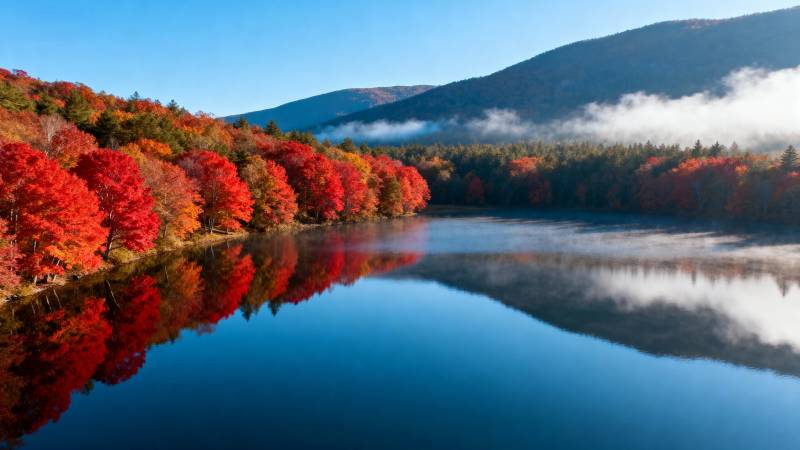 秋湖红叶倒影