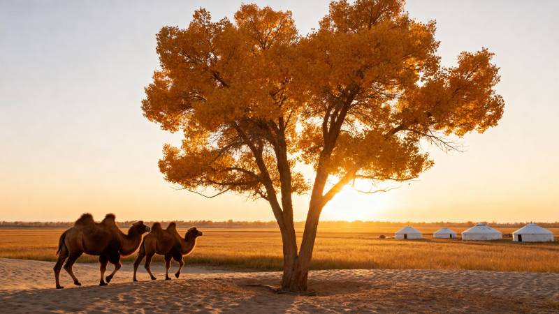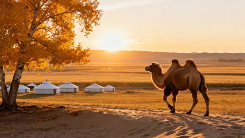 草原晨曦驼影