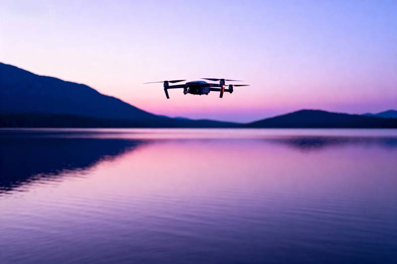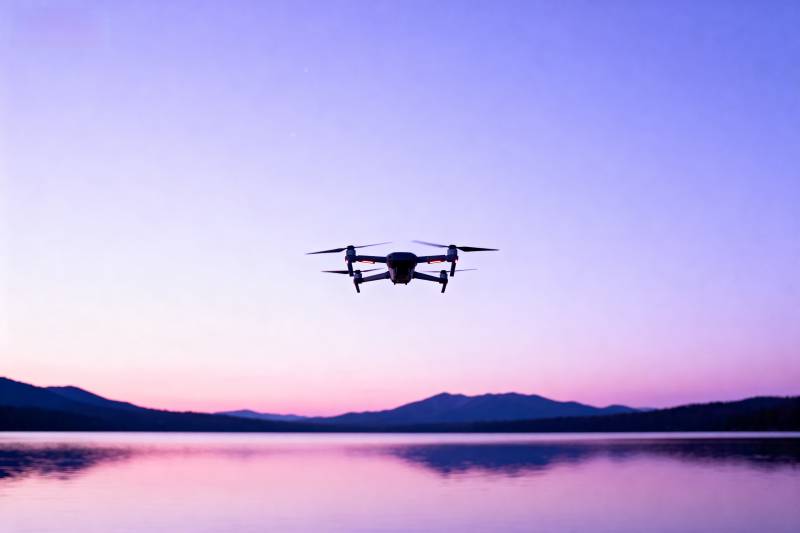 暮色中的无人机飞行