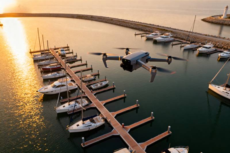 无人机飞越码头