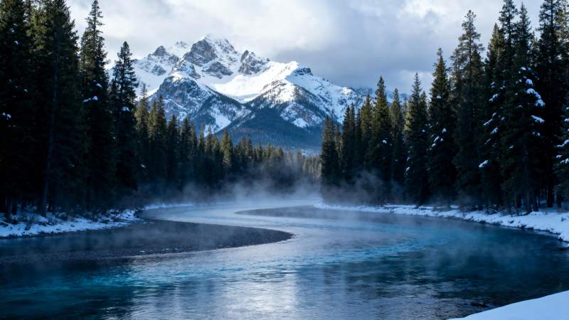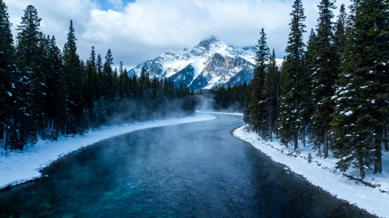 雪岭溪流静谧景