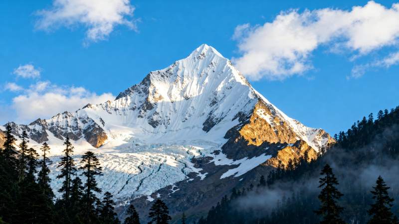 雪山巍峨 松林静谧