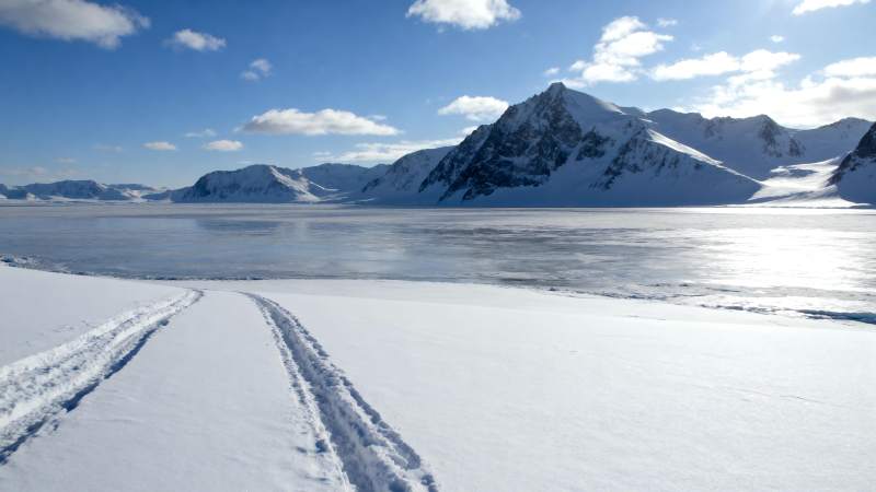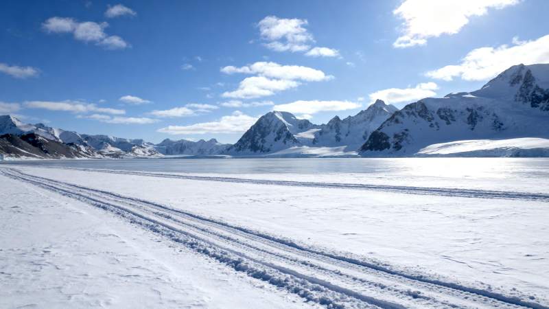 雪原上的车辙痕迹