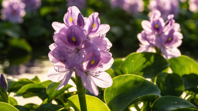 紫花绽放绿叶间