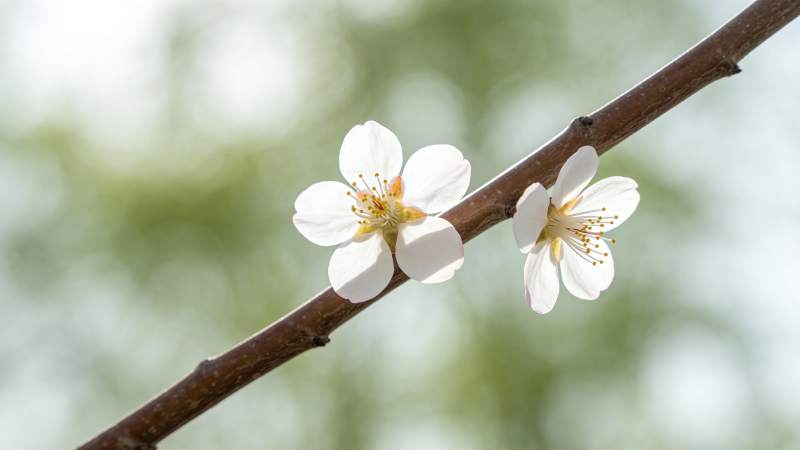 枝头绽放的洁白花朵