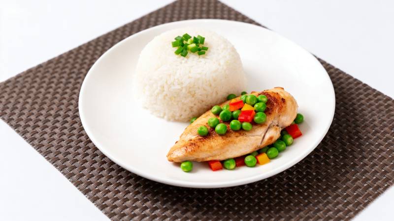 鸡肉配米饭蔬菜