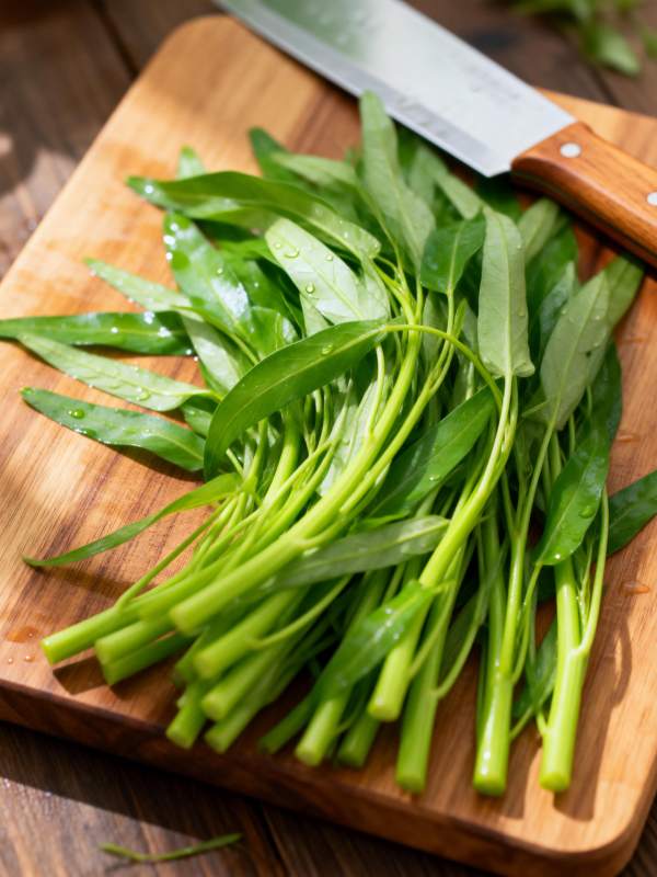 新鲜空心菜待切